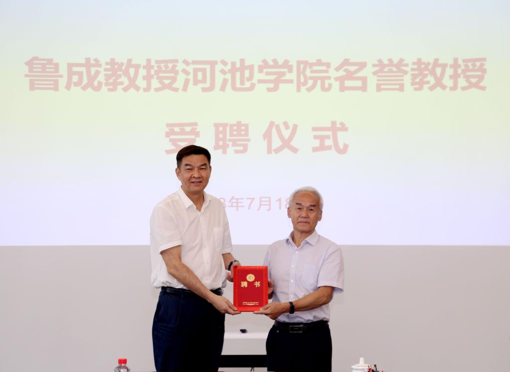 7月18日下午,国家蚕桑产业技术体系原首席科学家、西南大学鲁成名誉教授受聘仪式在金沙官网实训楼1507会议室隆重举行,学校党委书记韦安光出席并为鲁成教授颁发聘书。受聘仪式由副校长贺卫国主持。